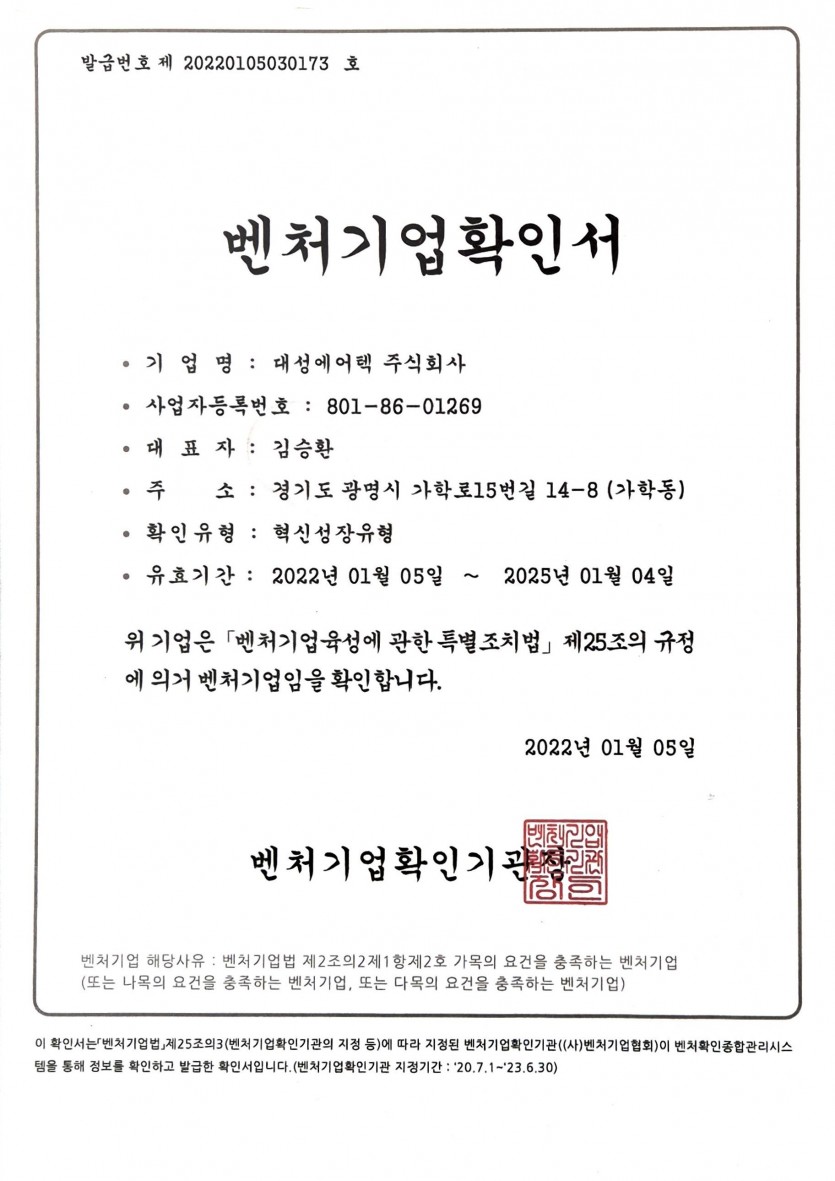 벤처기업확인서