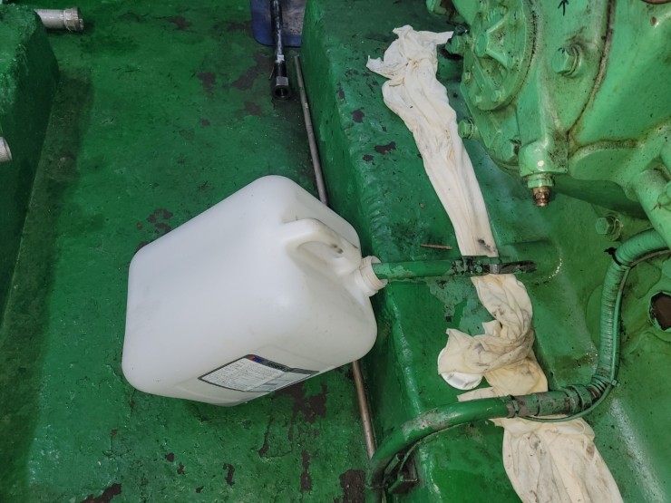 작업 전 안전을 위해 전원.토출발브.냉각수 차단 하고 작업 시작 합니다.